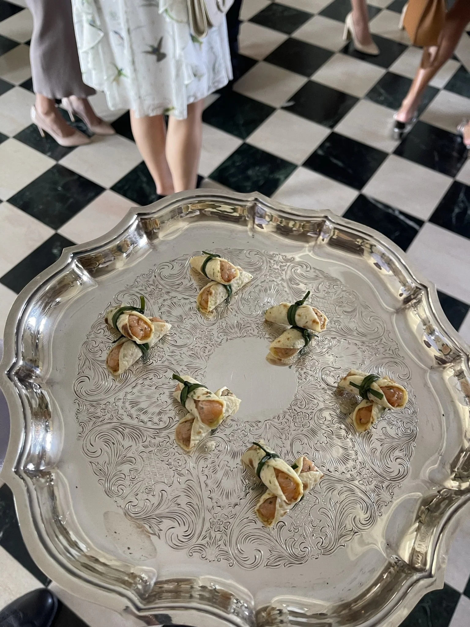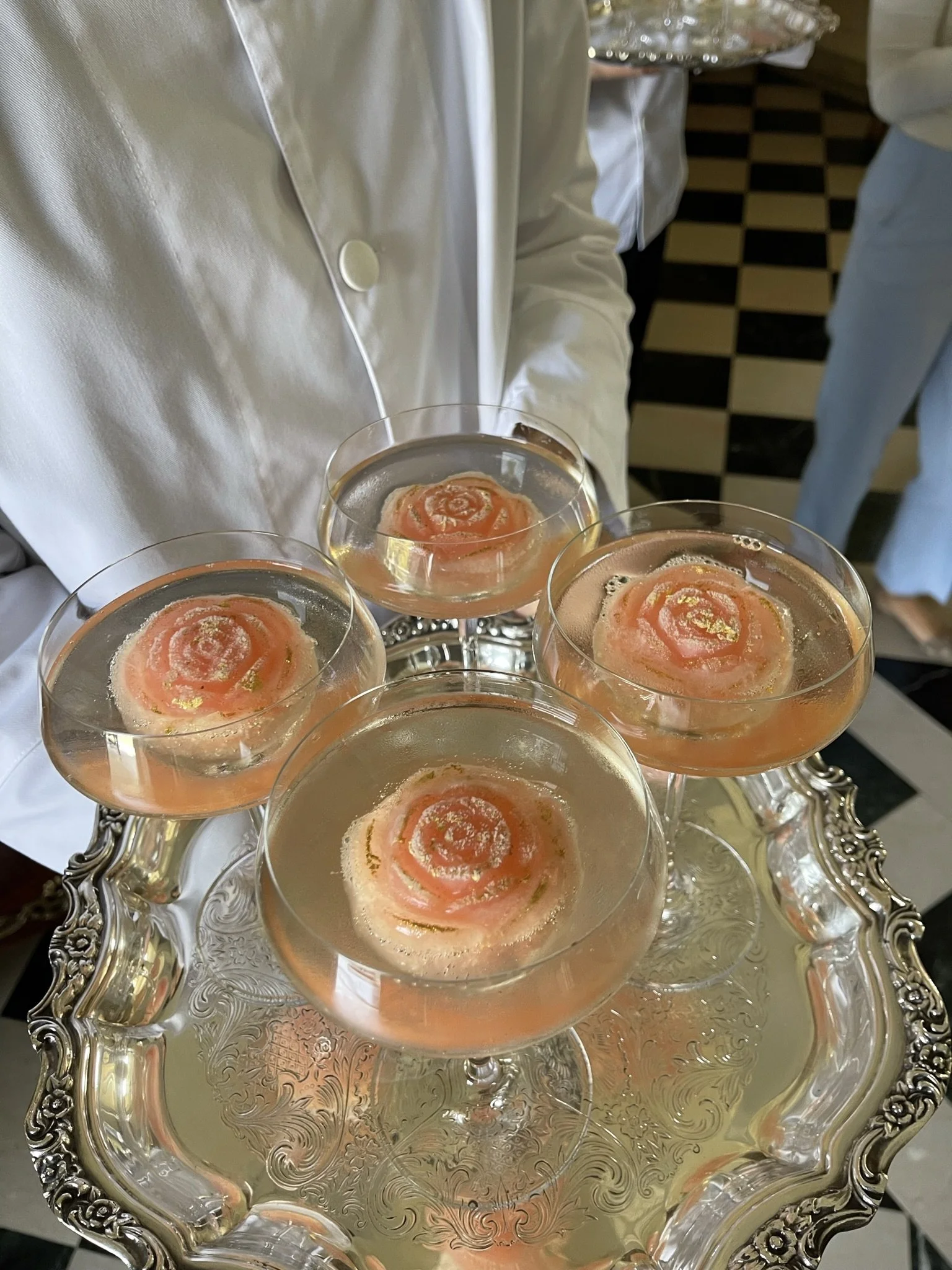 An enchanting afternoon tea at the famed Bois Doré mansion in Newport, Rhode Island — a celebration of grace, music, and floral beauty. Guests were serenaded by a harpist while enjoying festive rose-shaped cocktails, elegant light bites, and seasonal hors d’oeuvres surrounded by lush blooms and gilded architecture. Another Newport highlight included a sunset dinner at the Gardiner House, where coastal views, fine wine, and golden-hour light created an evening of effortless elegance.